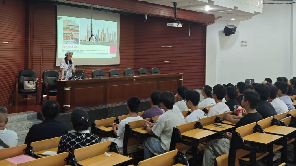 研讨会上,邹宁主任介绍了学院及建筑系发展历程,感谢湖南工学院长期支持,期望深化合作将楚怡工匠班打造成特色育人品牌。彭莉妮副主任汇报了2024级育人成效,并解读2025级培养方案核心内容。双方围绕人才培养方案动态优化、学生管理与党团建设、创新创业培养、就业指导等议题深入研讨,达成多项共识。在新生入学教育活动中,教师代表向全体新生致以热烈欢迎,同时介绍了专业培养体系、课程设置及学习方法,解答了专业学习与生涯规划疑问;2024级学生祝琪琪作为老生代表分享成长心得与实践感悟。