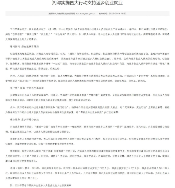 关于开展湘潭实施四大行动支持返乡创业就业通知