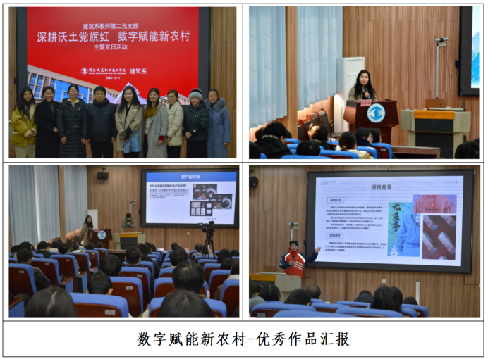 党支部坚持党建引领事业发展,让党务工作与社会服务和教育育人等业务同频共振,深入推进“筑”五匠(铸匠心、锻匠师、炼匠才、承匠情、践匠行)一支一品建设。依托学院聚焦乡村振兴、新型城镇化多年来的实践探索,夯实“湖湘传统村落数字博物馆”国家智慧教育平台试点项目的建设基础,结合“乡村风貌数字化保护与传承”等课程的任务实施,深入开展数字赋能乡村振兴实践活动。党支部书记彭莉妮同志与师生党员前往湘潭市七星村、娄底市富托村、娄底市天坪村等特色村落展开实地调研、测绘,期间获取了大量的无人机航拍、720全景、三维点云等数字素材。目前以调研村落为载体,创作了100余组乡村绘本、乡村H5、乡村海报、乡村风貌文创等数字化乡村文化衍生品,其中的优秀作品现已实际应用于乡村建筑文化遗产数字化留存、乡村文创产品开发、乡村风貌景观整改以及乡村品牌云端推介等。