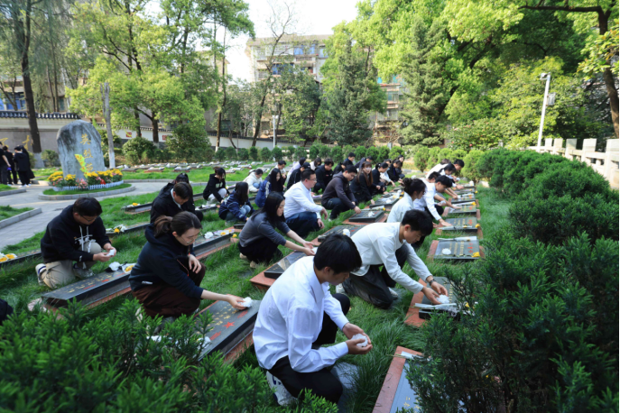 4月2日下午,建筑系教师第二党支部组织党员师生代表赴湘潭市烈士陵园,开展“五匠铸魂缅英烈 红脉庚续启新程”爱国主义教育实践活动。全体人员庄严肃立于革命烈士纪念碑前,师生齐声高唱国歌。随后,党员师生代表缓步上前,整理花篮缎带,向长眠于此的革命英烈致以深切哀悼。