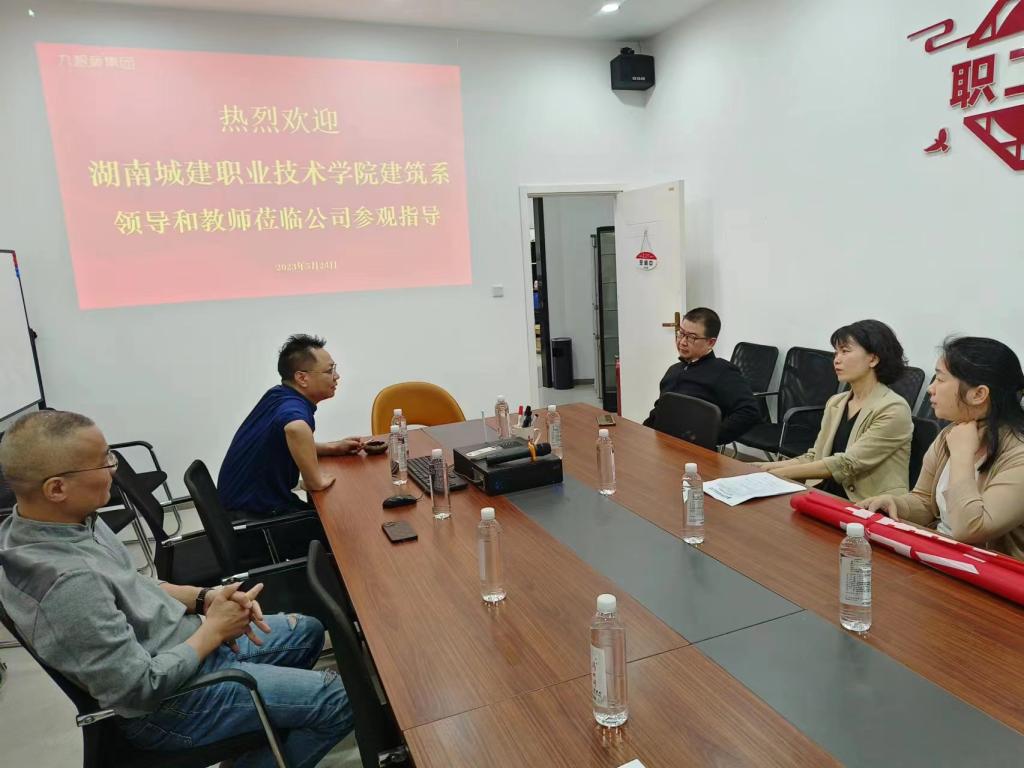 5月24日,建筑系主任邹宁、建筑室内设计专业带头人罗平、专业负责人张淑娥和专业教师王杨赴湖南九根藤智慧生活科技有限公司进行了走访调研,并对正在该企业锻炼的专业教师柳清的工作情况进行了解和检查。集团联合创始人兼顾问史茂萱,集团副总经理尹建兵热情接待。