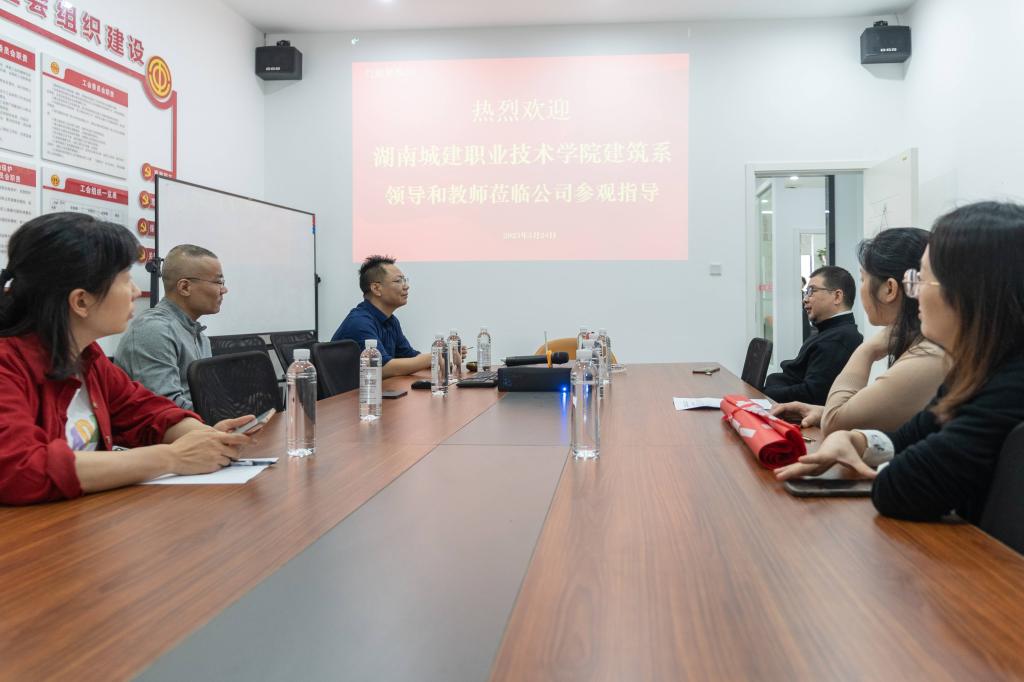 尹建兵围绕企业发展情况、人才需求、校企协作等方面进行了交流发言,对学校人才培养质量和毕业生职业能力给予高度评价,邹宁介绍了学院建筑设计专业群所取得的成绩及现状,另一方面也期望校企双方在教学实践、就业对接等方面达成进一步深入合作。罗平表示今后将结合企业的人才需求,下一步将持续加强校企合作、发挥校企双主体优势,进一步推动共建教学资源、共享实训基地,为建筑室内行业企业培育更多优秀人才。